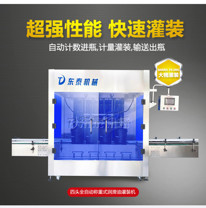 機油灌裝機適用于對4kg-25kg汽車用品類產品:潤滑油、防凍液、車用尿素等液體灌裝。自動完成計數進瓶、計重量灌裝、輸送出瓶等一系列操作。 特別適用于潤滑油、水劑、食用油的定量灌裝,是食品,醫藥,化妝品以及精細化工等行業的理想灌裝機。本機采用可編程控制器(PLC)、高速工控組態軟件進行實時監控的控制,使用調節方便。整機按GMP標準要求制作,各管路連接采用快裝方式,拆卸清洗方便,與物料接觸部位及外露部位均采用不銹鋼制造。整機安全、環保、安全、美觀、能適應各種不同環境工作。