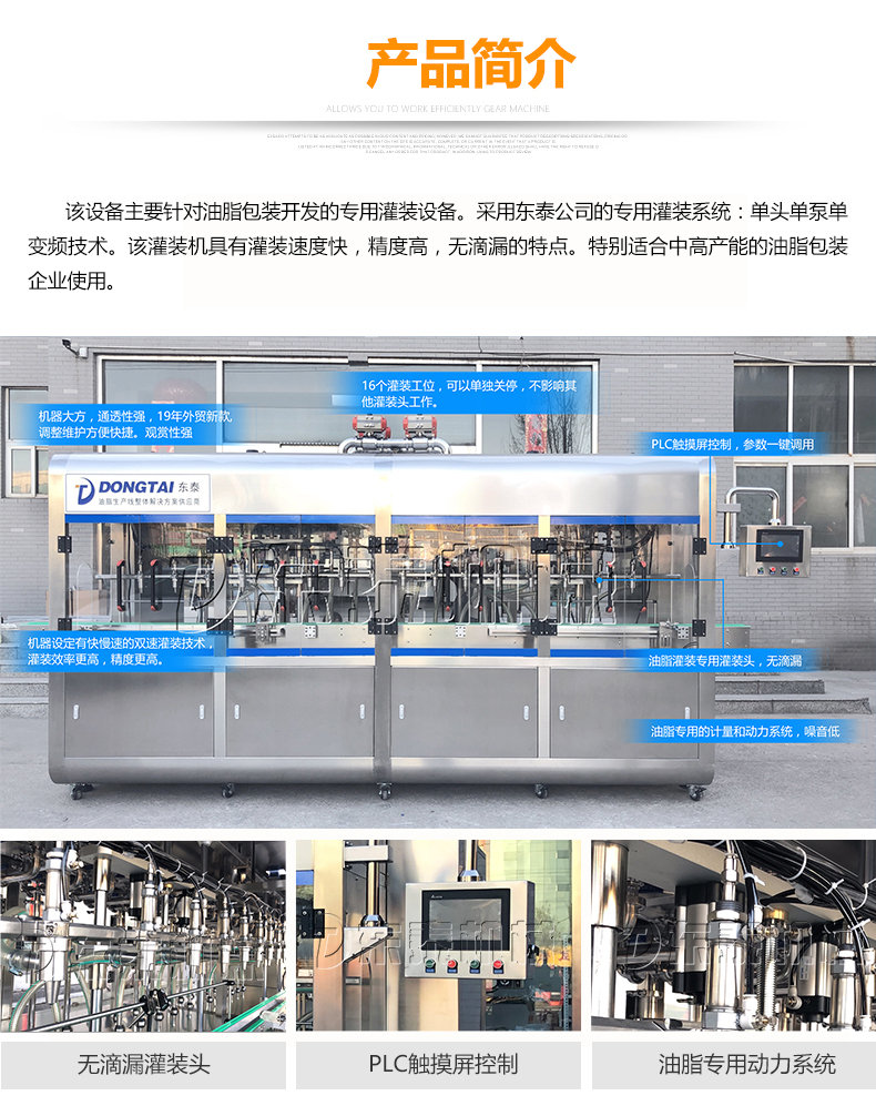 3、摒棄了傳統夾瓶口灌裝方式,采用下潛式灌裝下料口設計,邊灌邊提,避免了灌裝速度快產生細小水珠噴濺污染瓶口的現象產生。配合多段式快慢速灌裝,可以保障高速灌裝時全速灌裝,又可有效解決氣壓過高快速灌裝時泡沫溢瓶現象,變頻控制更,自我保護更安全,穩定,延長設備使用壽命。