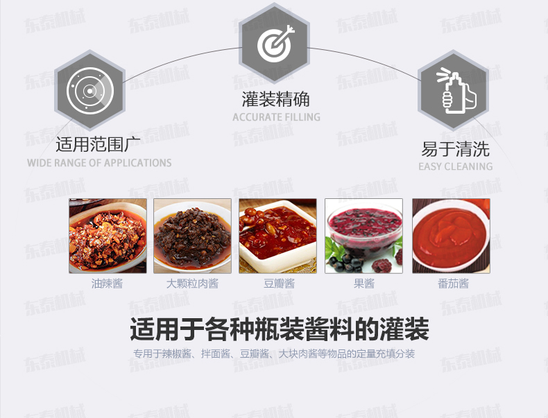 該小型辣椒醬灌裝機全不銹鋼制作,衛生、安全