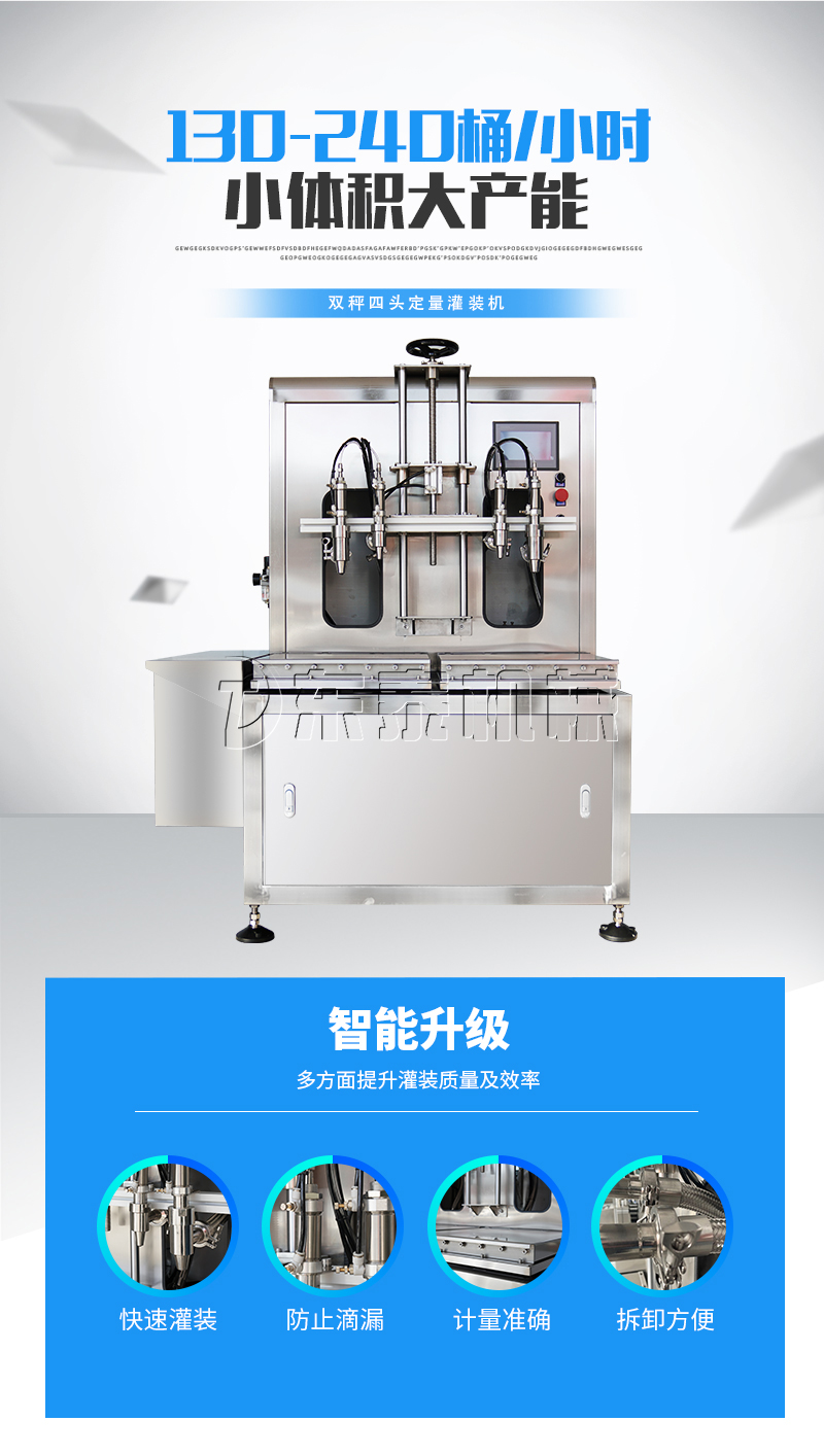 5.該設備配備四頭(大小兩組)雙泵,,凈重/毛重、自動/手動功能一鍵切換,進一步滿足客戶精度,速度,低投資需求。